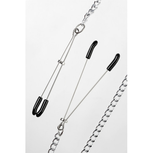 Зажимы на соски Pecado Bdsm, «Вилки», на цепочке, металл, серебро