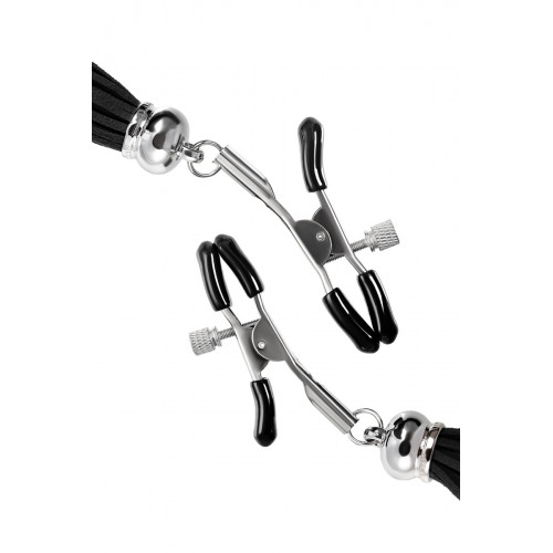 Невероятно сексуальный аксессуар пробудит фантазию и повысит чувственность эротических зон. Мягкие резиновые накладки оберегают соски от повреждений. Металлический винт регулирует степень сжатия зажимов: от нежно-приятного до сильно-грубого. На концах черные резиновые наконечники, для безопасного воздействия на нежные участки тела. Компактный размер удобно вмещается как в женскую, так и в мужскую руку. Кисточки из натуральной замши не только визуально украшают эротический атрибут, но и еще утяжеляют его. Для самых смелых и искушенных любителей доминировать и подчиняться.