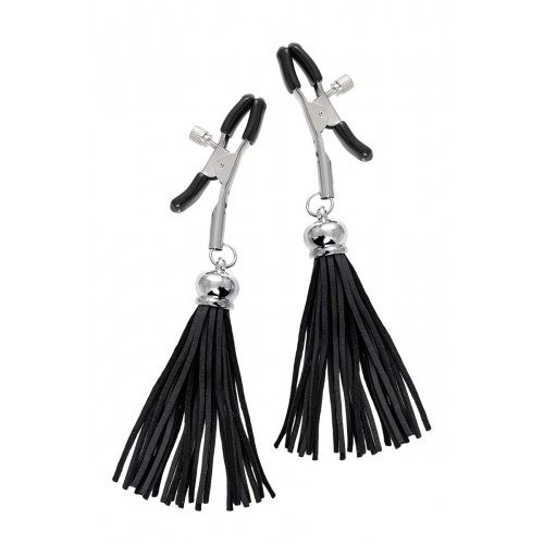 Зажимы на соски Pecado Bdsm, «Прищепки», с кисточками из замши, металл, черные