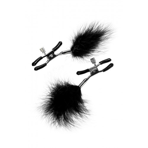 Зажимы для сосков Theatre by Toyfa, металл с пухом, черные