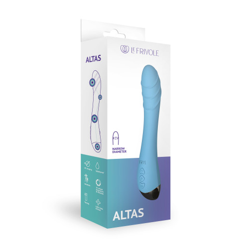 Лаконичные изгибы и небесно-голубой цвет – одни из особенностей игрушки Altas. Но на них преимущества не заканчиваются – достаточно узкий диаметр (2,9 см) подойдет любительницам фингеринга, или же выступит в роли первой секс-игрушки. Благодаря твердому корпусу и рельефам на конце данная модель отлично подходит для стимуляции точки G. Рукоятка игрушки хорошо лежит в руке и обеспечивает комфортное использование, а благодаря кнопкам «+» и «-» найти тот самый идеальный режим будет в разы проще. Для включения достаточно зажать кнопку посередине на 3 секунды. Вибратор защищен от брызг и его можно использовать в душе.