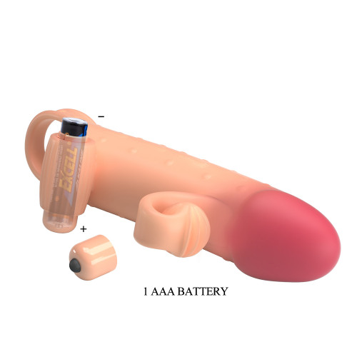 Насадка на пенис с вибрацией из ТПР плотно обхватывает пенис, увеличивая его длину и толщину, обеспечивая более яркие ощущения при проникновении. Вибрация усиливает стимуляцию, а гибкий клиторальный отросток с рельефной текстурой обеспечивает дополнительное удовольствие партнёрше при каждом движении. Вибрация питается от одной батарейки типа AAA.